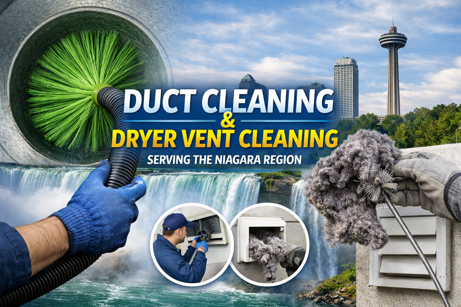 Homeowners and businesses across the Niagara Region rely on professional duct cleaning services to maintain clean and healthy indoor environments. The Duct Cleaning Company proudly provides air duct and dryer vent cleaning services throughout the region, including: